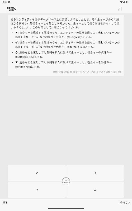 這是一個應用程序,可讓您有效地學習資料庫專家考試上午 II 的過去問題。