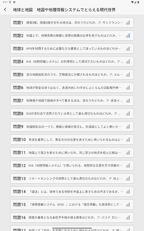 您可以有效地了解常見測試的地理情況。最多可以記住過去3次問題的正確答案。它可以讓您輕鬆複習做錯的問題,並且還附帶解釋,因此非常適合準備常見的地理測試。