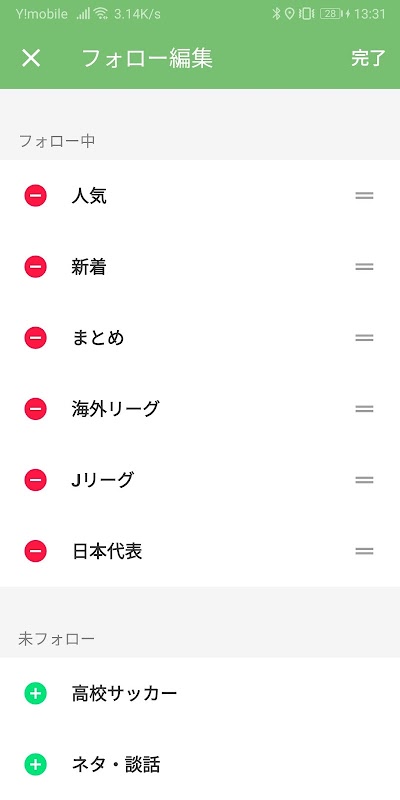 ホーム画面でカテゴリの並び替えができます。