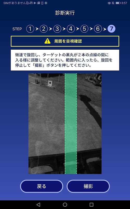 ⑦轉動目標,使其位於兩條虛線之間,然後按拍攝按鈕進行拍攝(共3次)。