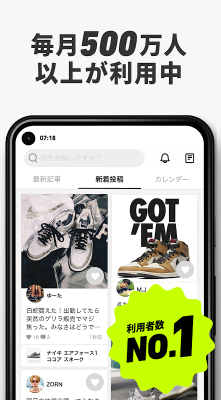 日本排名第一的運動鞋和集換式卡牌跳蚤市場應用程式!每月用戶超過600萬。所有商品最高可獲得價值5000日圓的優惠券。
