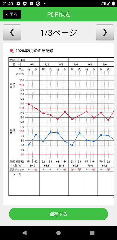 您可以輕鬆創建血壓筆記本格式的記錄血壓值的PDF文件。