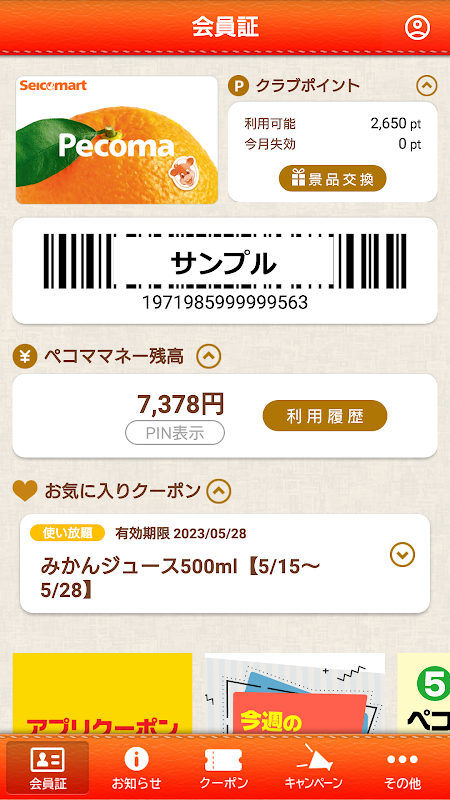 您可以使用該應用程式發行 Seicomart 會員卡“Pecoma”!讓您在 Seico Mart 購物更經濟便捷,現在您可以使用 Pecoma Money!