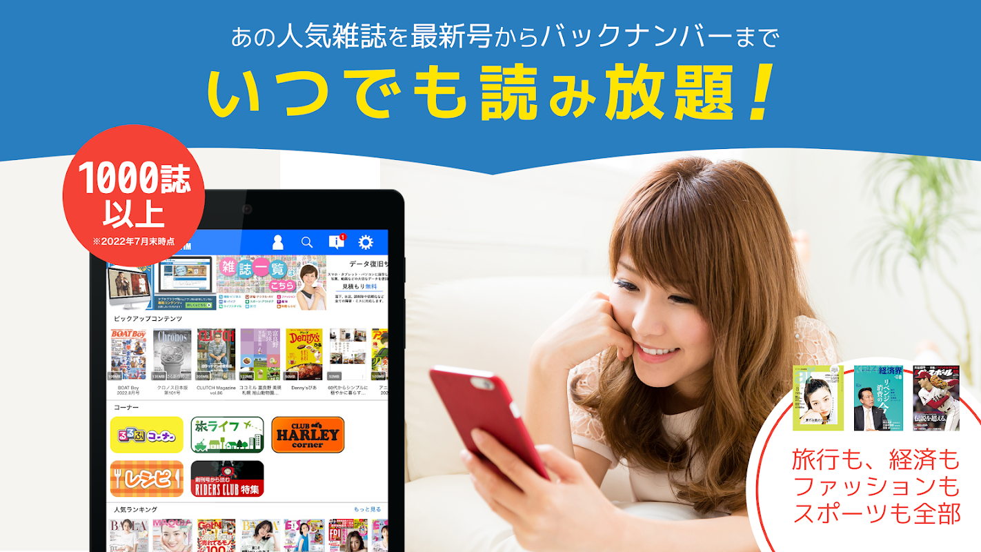 ・每月只需 500 日元,即可閱讀 1,000 本雜誌,如果算上過刊,則可閱讀超過 6,000 本。