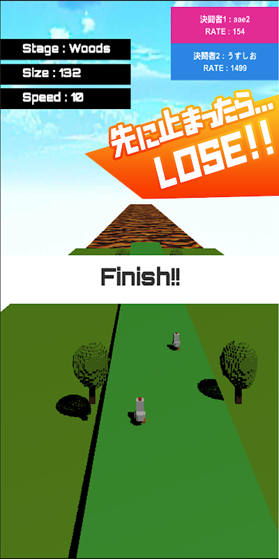 ゲームに勝利すると、LEVELが1上昇するぞ!!LEVLEが上がることで、ブレーキを掛けたときの減速スピードが上昇!!