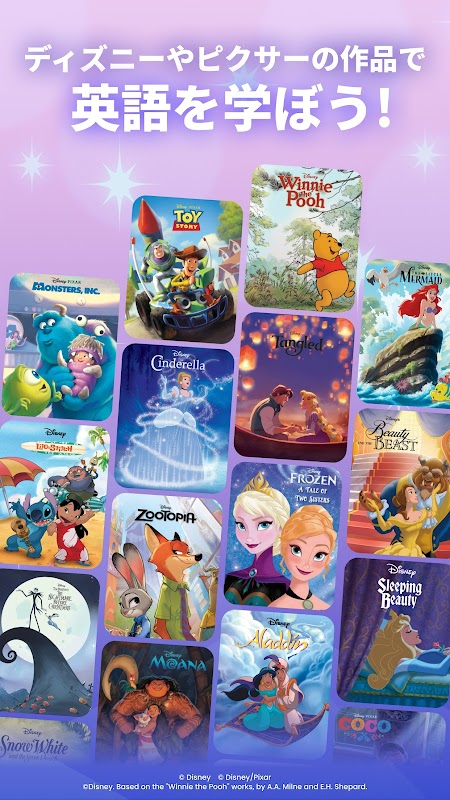 故事採用迪士尼美國總部提供的英文原版文本,並由母語人士進行沉浸式英語旁白。學習過程充滿樂趣,就像觀看電影一樣。