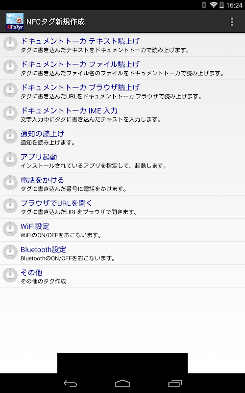 「ドキュメントトーカ NFCトーク」はNFCタグのデータを作成し、それを読み取って様々な動作をおこないます。