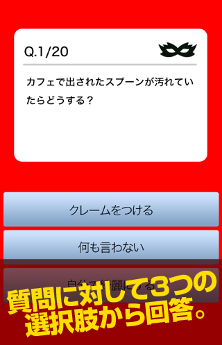 診断は20問の質問に対して3つの選択肢から回答します。