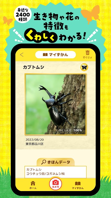 入選第9屆數碼繪本獎!這是一個百科全書應用程序,顯示植物和動物的名稱和詳細信息,鏈接到 Gakken 的百科全書 LIVE!還可以將拍攝的照片製作成自己的圖鑑哦!
