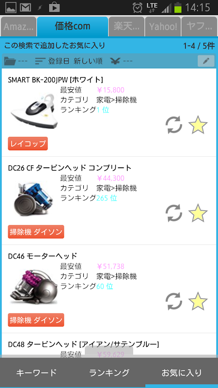 検索キーワード(タグ)や履歴別で、気になる商品・購入候補の商品を管理できます。