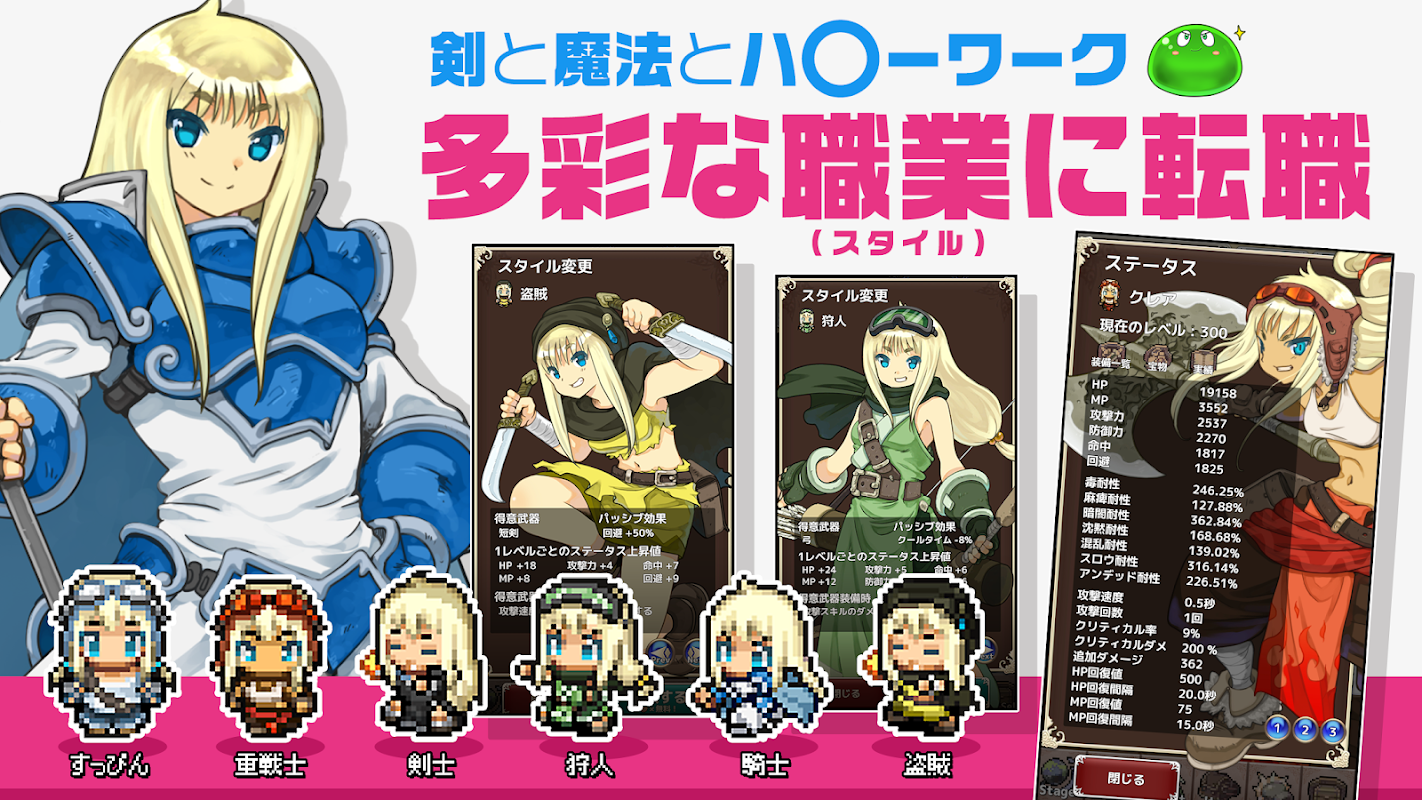 一個流行的左手黑客和誹謗角色扮演遊戲!自動戰鬥操作簡單!因為只限單人遊玩,所以一個人也能搞定!訓練一個神秘的伙伴史萊姆和一個女孩成為傳奇獵人!基本免費!