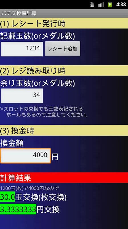 パチンコやスロットの交換率(換金率)を簡単に求めることが出来ます。