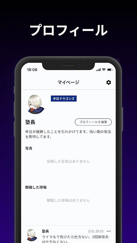 “職業棒球觀戰日誌”是一款職業棒球迷應用程序,可讓您保存自己喜歡的球隊的比賽觀戰記錄,並與其他球迷互動。