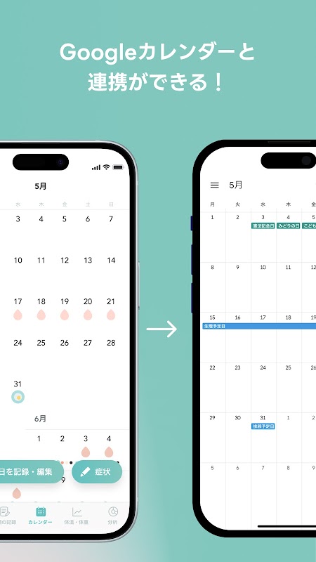 您不僅可以記錄月經期間的經血訊息,還可以記錄您的頭痛、腹痛等日常症狀,以及煩躁、悲傷等精神狀態。因為月經因人而異,這是一個面對自己身體的機會。