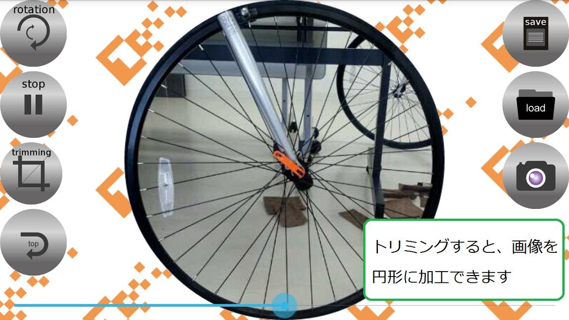 撮影した(またはギャラリー内の)ホイール画像を、連続回転して実際に走行した場合の、