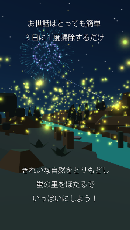 螢火蟲村培訓應用程序!一款打發時間的免費訓練遊戲,一邊聽著治愈系的BGM,一邊看煙花和螢火蟲,享受夏日夜晚的夢幻氛圍!