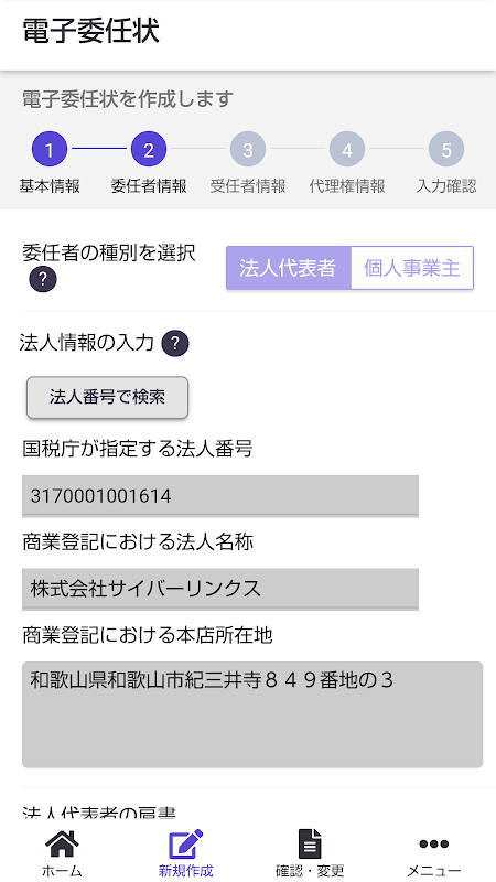 ・ 公司代表(委託)為僱員、代書人、稅務會計師和其他專業人士創建授權書,獨資經營者(委託)為專業人士創建授權書。創建時,使用數字證書進行數字簽名,作為個人編號卡的簽名。