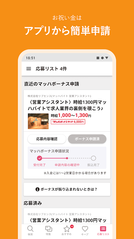 ・気になる求人を「キープ」して後から応募出来る