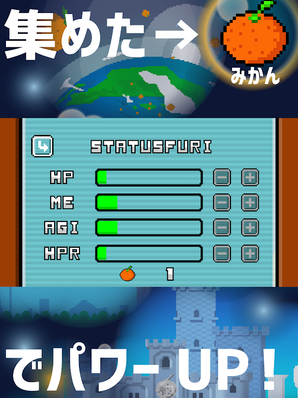 集めたみかんでパワーアップしよう!(下げることもできるよ!)