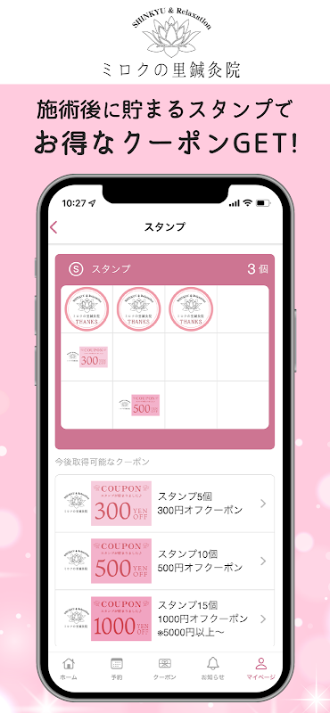 您可以通過該應用程序獲取彌勒佐藤針灸診所的最新信息和優惠信息。您還可以隨時通過智能手機查看菜單、所需時段並進行預訂。通過安裝該應用程序,您可以更方便地在離家更近的地方使用彌勒佐藤針灸診所。
