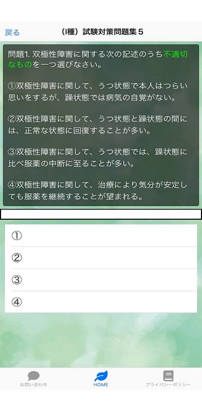 (2021 年 10 月 22 日)增加了第一類和第二類測驗!這是一款心理健康管理III類措施的測驗應用程序。您可以根據過去的問題進行測驗。