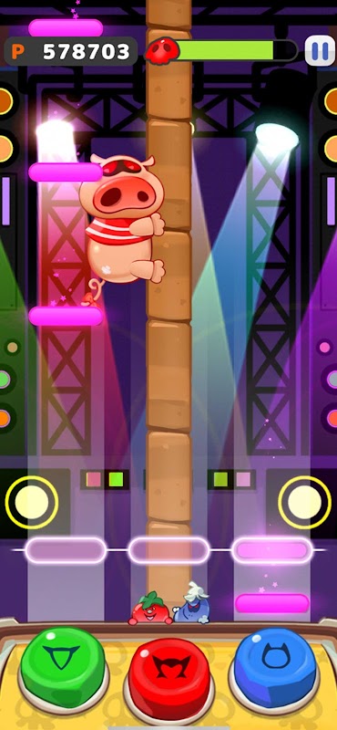 おだてブタをリズムで気持ちよくさせ、木を登らせましょう!