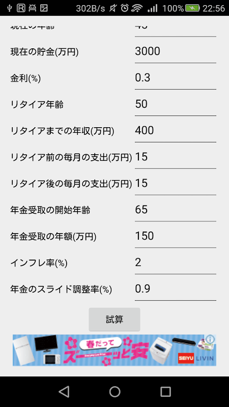 リタイア資産シミュレーション