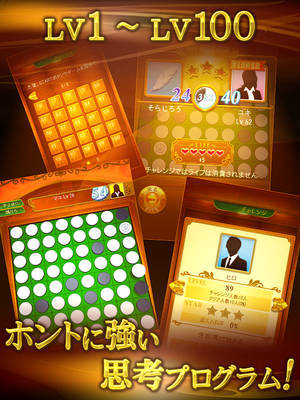 ◇ 挑戰業界頂級AI的挑戰遊戲:簡單對戰電腦的單人模式。難度等級從 LV1 到 LV100,讓從初學者到高級玩家的每個人都可以享受它。 AI多次與其他應用和玩家對戰,將其思維程序提升到行業最高水平。