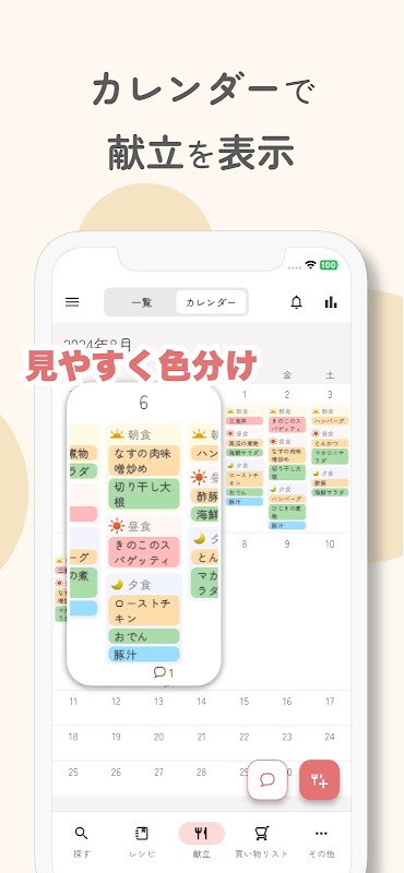 無論是家庭或情侶,都能輕鬆使用的食譜記錄!簡單易懂的菜單日曆。食譜可透過資料夾和標籤進行分類。您可以建立多本食譜。