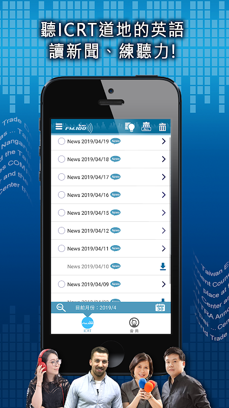 英語新聞內容提供中英文對照,並有複讀設定、查字義、本日新聞單字分析等學功能,由ICRT電台專業播出,可訓練您熟悉外國人的說話節奏,學習最新的流行辭彙,更能吸收新知識,它絕對是您最有效學習英文,尤其是訓練聽力的好教材!