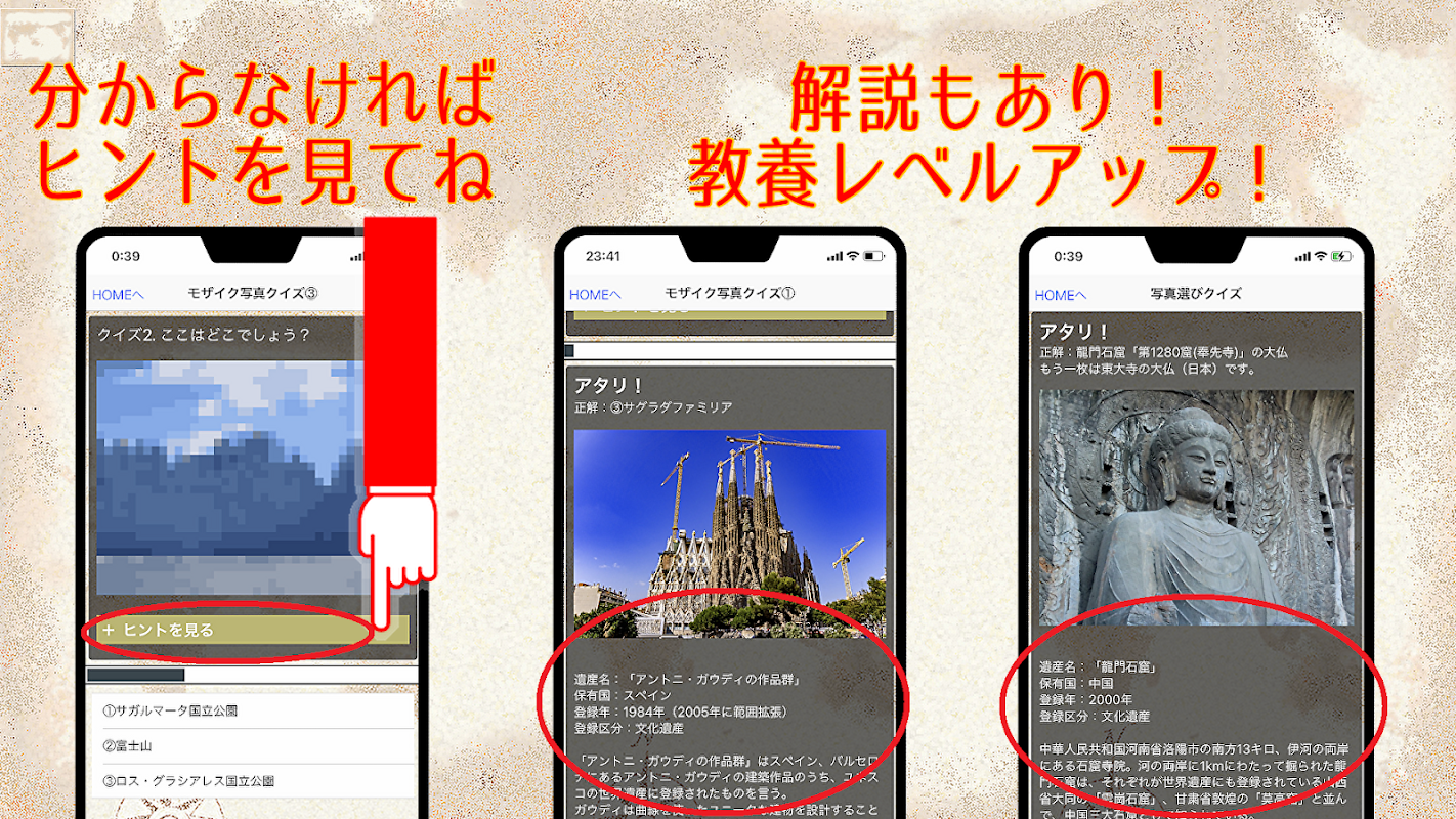 還有解說,可以通過照片了解作為文化應該知道的世界遺產。