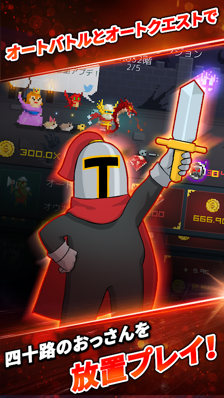 APKPure 使用簽章驗證功能,確保為您提供無病毒的 中年騎士ヤスヒロ-おじさんが勇者に-ドット絵RPG 無料 APK 下載。