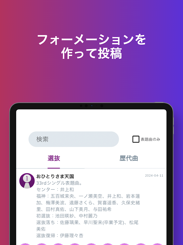 乃木坂46選拔陣製作網站的應用程式版!