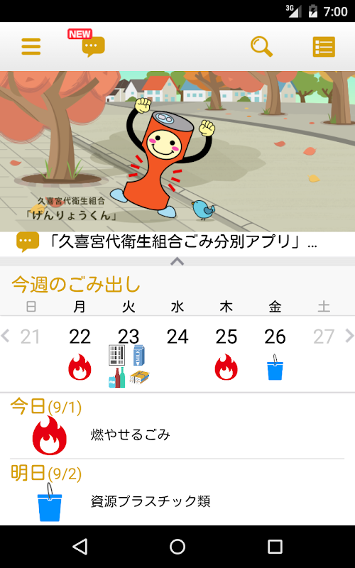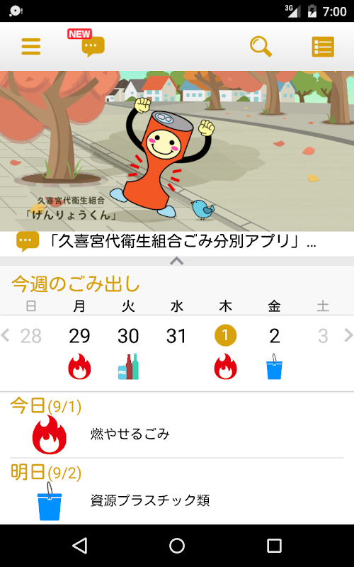 當您註冊您的居住地小區,“今天和明天”,“週末畫報”,你可以在一個屏幕上看到的“每月”的三種模式的垃圾回收計劃。