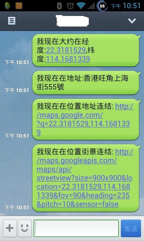 可以把经纬度、地址、地址连结、街景连结,传送给友人,配合google map或是浏览器得知你所在地。当你不知道自己在那里,执行此程序,便可以知道自己在何处。