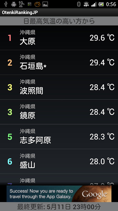 気象庁が発表している、全国観測値ランキングデータを取得、表示するアプリケーションです。