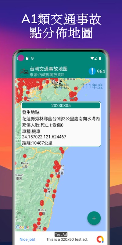 ● 「台灣交通事故地圖」應用程式非政府APP,與政府無任何關係。