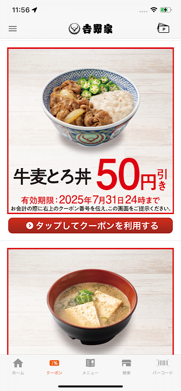 使用吉野家官方應用程序獲取優惠券和活動信息!