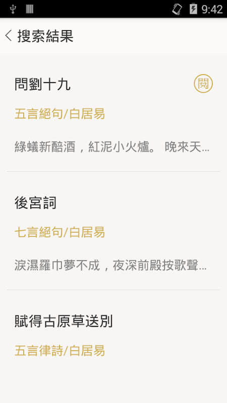 1 分類詳細,本APP包含以下分類:七言古詩、七言絕句、七言律詩、五言古詩、五言絕句、五言律詩、樂府;