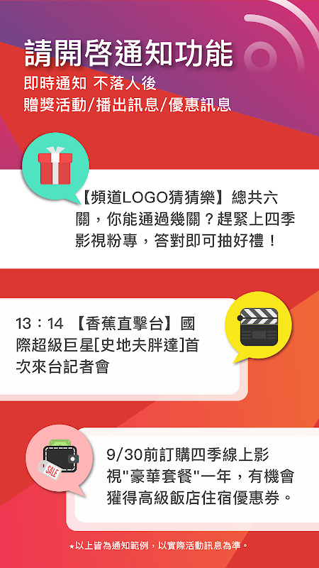 第一次註冊成為《四季線上影視》用戶,只要未使用過本活動或購買任何頻道套餐服務,即可享 7 天免費收看頻道節目(每位註冊用戶限享一次)