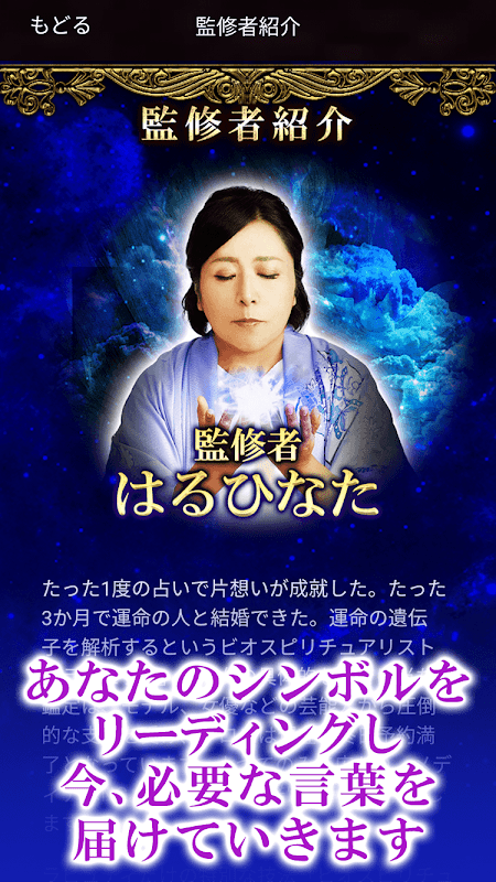 「この人…日本の宝だ」米国ハリウッドのレッドカーペットにも招待され、米国のみならず、世界中のセレブたちから絶大なる信頼を受けている「はるひなた」。あの人の気持ち、2人の宿縁、あなたの結婚…、世界を震撼させる世紀の鑑定をお楽しみできちゃいます。日本を代表するスピリチュアリストをあなたのお手元にてご堪能下さい。