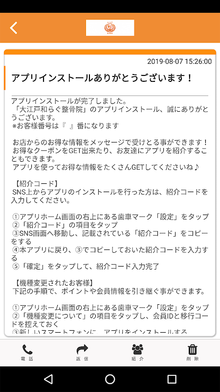和らぐ整骨院のアプリをSNSを通じてお友達に紹介する事ができます。