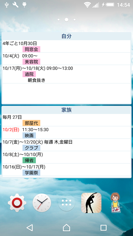 ★家族の学校卒業、結婚、命日などを登録しておくことで、何年目、何年後がすぐにわかる記念日カウンター