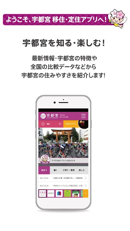 栃木県宇都宮市の「移住・定住」に関する最新情報を受け取れる無料スマホアプリ。