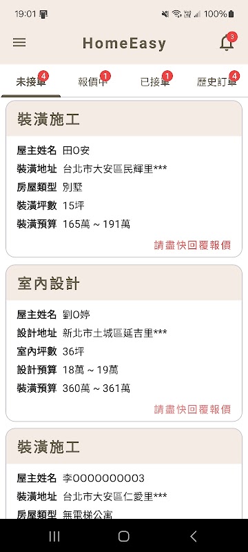 家易(HomeEasy)是一個專為室內設計師和裝潢施工團隊打造的公開、公平、公正的接案平台。在確定訂單成立後,才需要開始著手設計裝潢,避免做白工的情況發生。