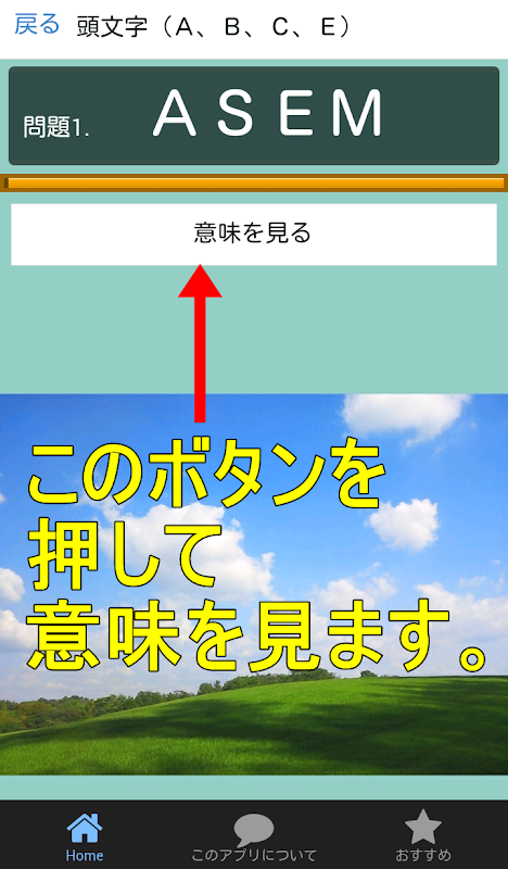 加入,它是學習,將出現在考試不是一點點的就業考驗社會的考驗縮寫的含義的免費應用程序。問題是,你是單獨為英文的第一個字母的字母表每一個。