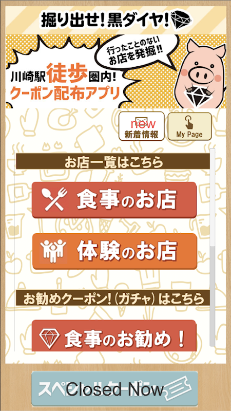 許多原始優惠券!我們在川崎站附近發現優質商店的優惠券,並將它們提供給每個人!這是一個應用程序,圖像豬挖出松露(黑鑽石)!