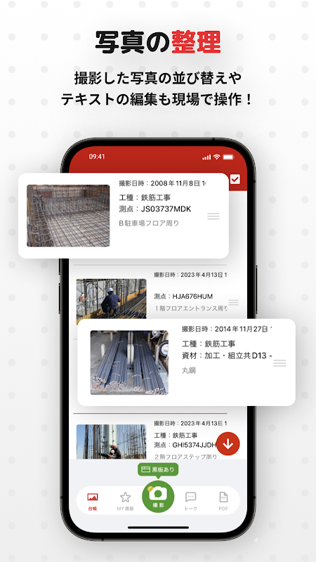 在智慧型手機上完成你的工作!這款建築照片應用包含一個電子黑板。拍照時會建立照片分類帳。你可以選擇和重新排列照片、編輯文本,並輸出為 PDF 或 Excel。