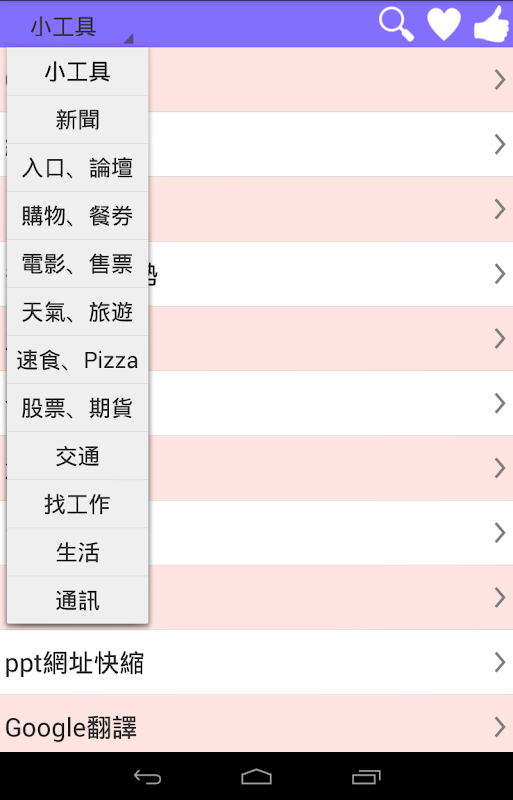 ✓左上角種類選擇 - 歸納了12種類型的網站