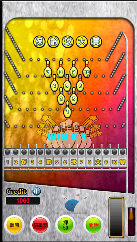 2.依保齡球的排法,只要達成一定的排法即可中獎